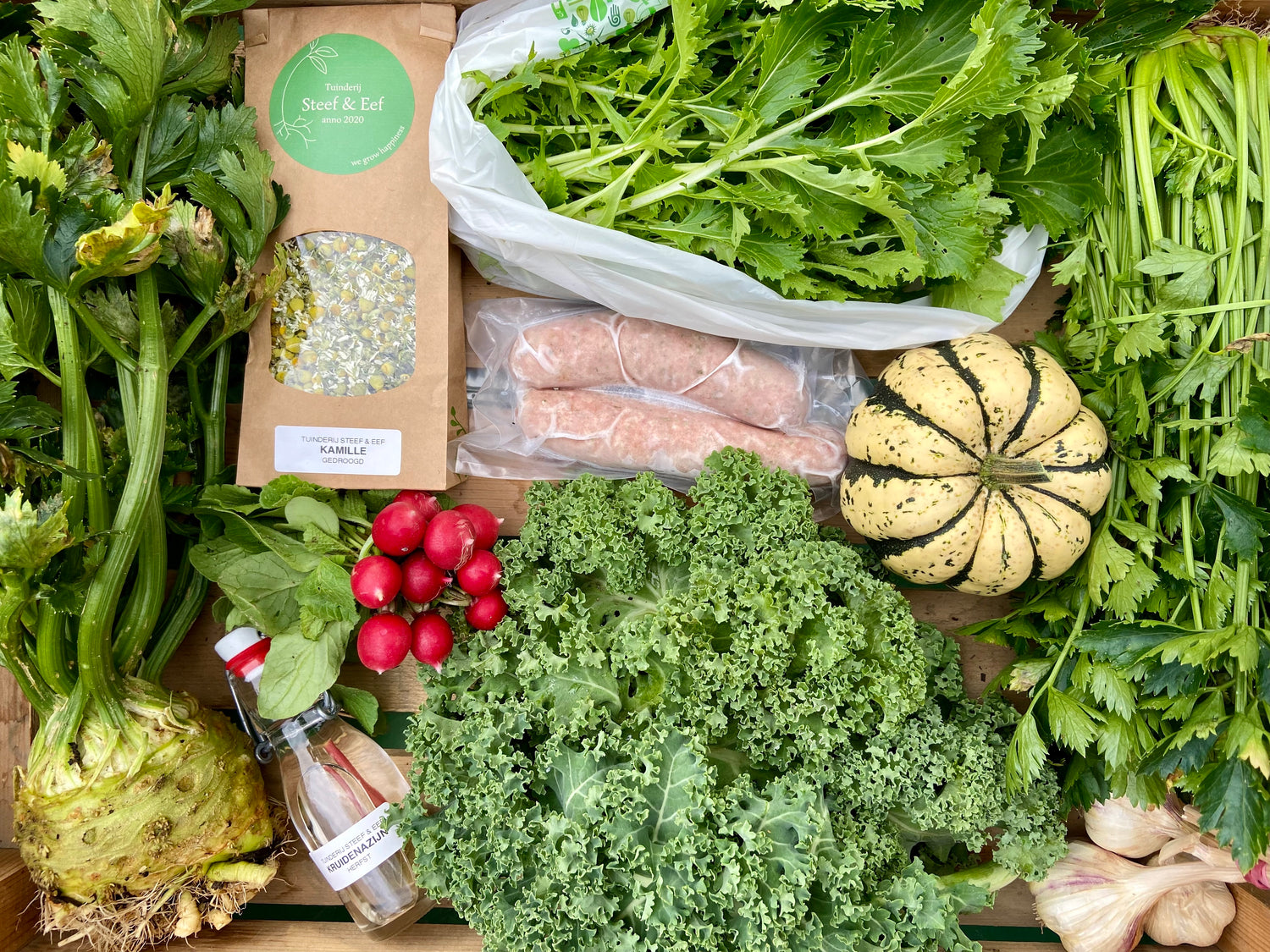 Verse groenten, dagvers voor jou geoogst, uit het seizoen, zonder bestrijdingsmiddelen, uit de volle grond! Wij telen jaarrond een breed assortiment groenten, zachtfruit, noten, kruiden en eetbare bloemen op een kleinschalige en duurzame manier. We werken met het seizoen, kiezen rassen voor ons klimaat en werken op een ecologische manier. Ons assortiment verandert (in het zomerseizoen) bijna wekelijks! We hebben naast een aantal standaard groenten ook veel bijzondere rassen, 'vergeten groenten' en lokale specialiteiten!