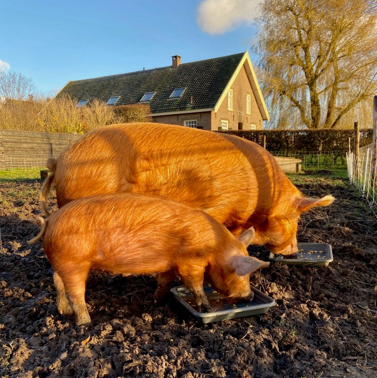 Wij zijn aangesloten bij Goed Gehouden, omdat wij achter een dierwaardige veehouderij staan. Onze eigen varkens (en kippen) houden we volgens deze voorwaarden. En ook het vlees dat we inkopen is 'Goed Gehouden'.